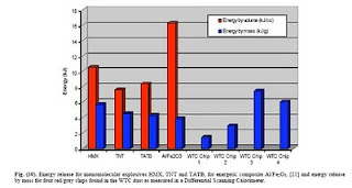 W trakcie badań czerwono-szary materiał wybuchowy typu termit porównany został z materiałami wybuchowymi, stosowanymi powszechnie do wyburzania budynków: TNT, HMX, TATB i wykazał lepsze od nich własności.